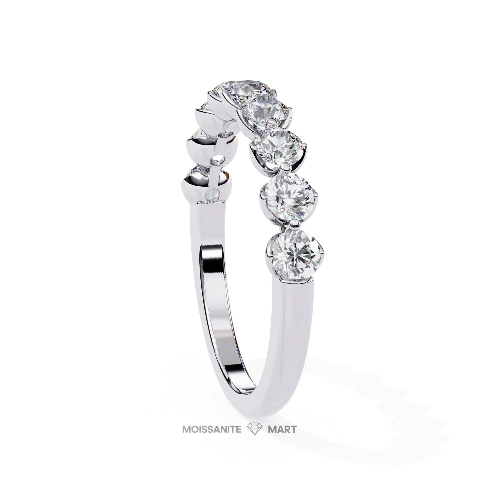At the heart of this ring lies a certified Moissanite stone, renowned for its unmatched brilliance, fire, and diamond-like sparkle. Each stone is meticulously cut to perfection, offering an elegant radiance that catches every eye. Whether worn as a wedding band, engagement ring, or a statement piece, this ring symbolizes everlasting beauty and sophistication.
